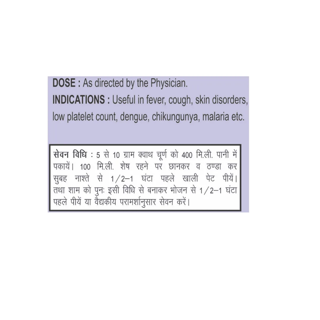 | Usage | Herbal Decoction / Kwath |